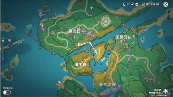 2、我们要去采集12支鸣草,下图就是高效采集路线。