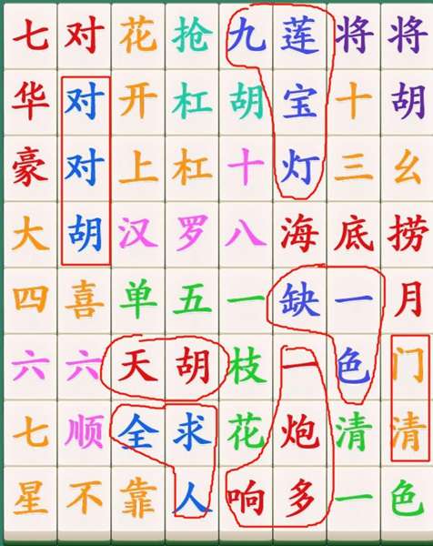 2、点击豪华七对,抢杠胡,将将胡,海底捞月,单五一枝花,七星不靠,清一色。