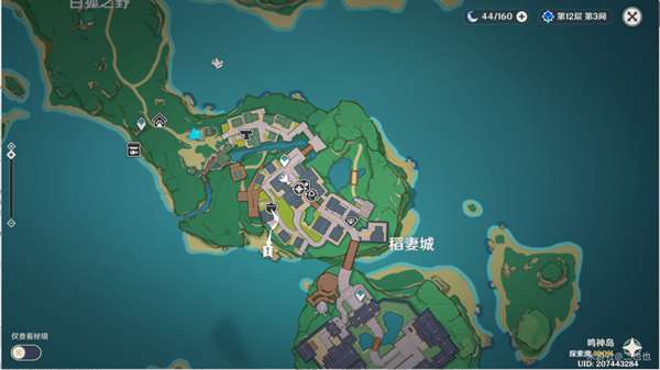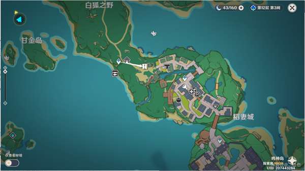 1、打开地图,传送稻妻城外。