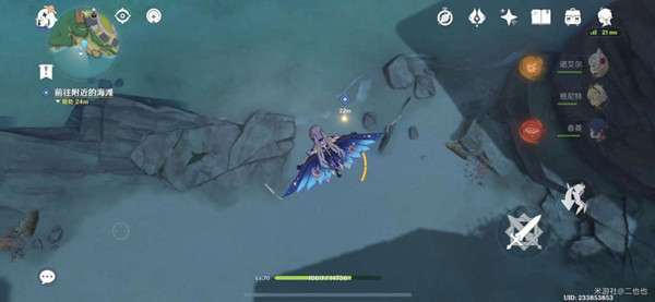往海滩飞到指引位置