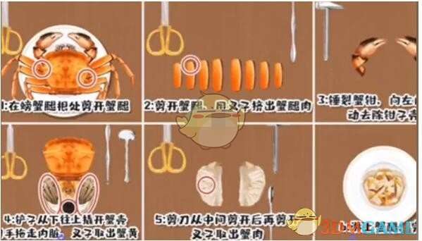 1、【真的会蟹】关卡首先使用剪刀,将蟹钳和蟹腿都剪下来
