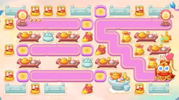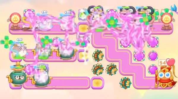 通关思路:这一关一样是三根传送带,大量的障碍,这关主要的炮塔就是多重箭,魔法球和风扇,利用多重箭的扩散伤害快速清理障碍开图,风扇的穿透伤害也是很好用的。
