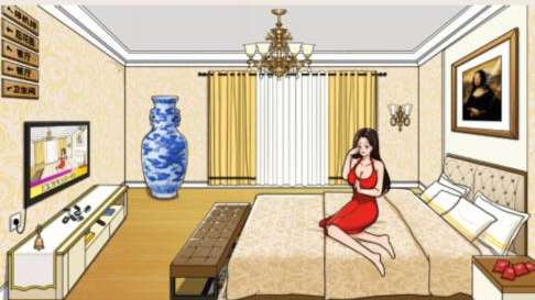 4、摇动桌子上的铃铛可以召唤女仆,点击床单可以看见200平大床。