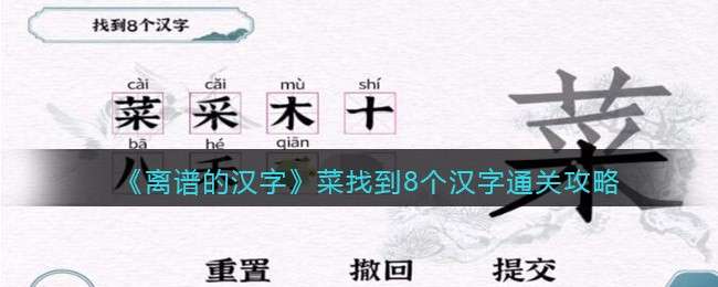 1、【菜】找到8个汉字,分别为:菜、采、木、十、八、禾、才、六、千、兴、
