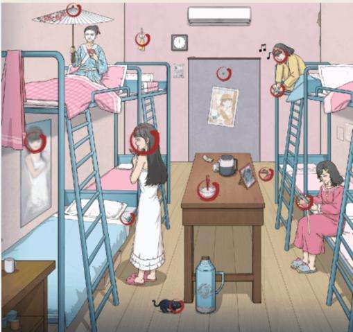 1、这一关我们需要在宿舍找出12个午夜禁忌,只要是奇怪的地方,都可以点一点