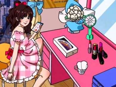 2、桌上是芭比粉口红,点击盒子找到惊喜饭盒,镜子前面是水晶苹果