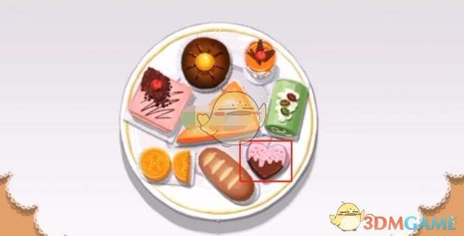 3、第三份:面包和蛋糕放在对应形状的位置上,注意爱心蛋糕要摆整齐才可以