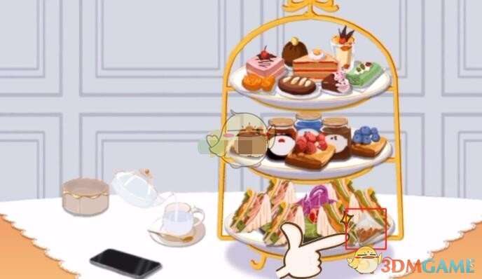 1、【饮茶先啦】关卡需要进行下午茶摆盘,第一份:把番茄、紫甘蓝、生菜放在中间,三明治围在盘子周围,挤上奶油