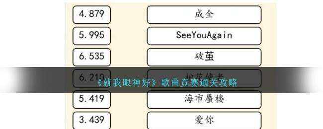 以上就是创意手游小编整理带来的《就我眼神好》歌曲竞赛通关攻略,更多关卡攻略小编将持续更新,详情点击关注创意手游网!