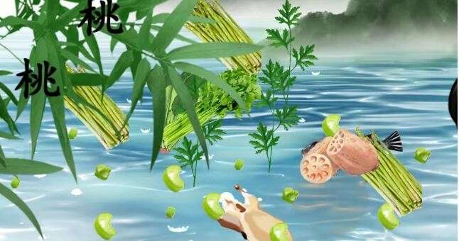 1、【春江水暖鸭先知】首先把“木”和“兆”先后拖到竹子上组合成桃