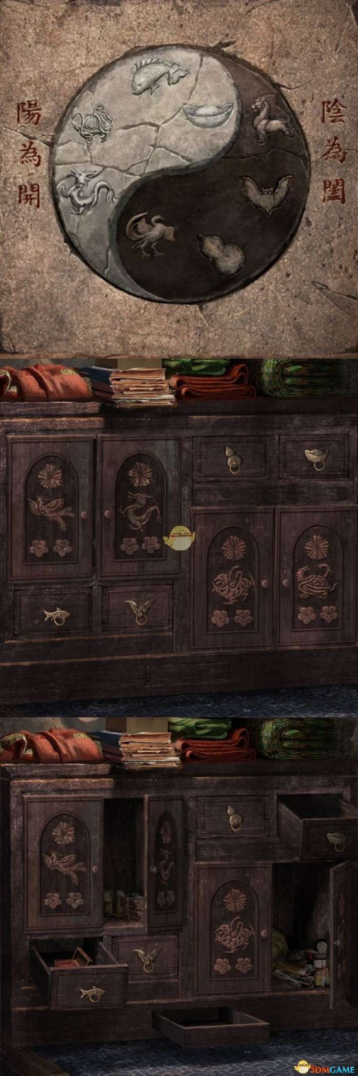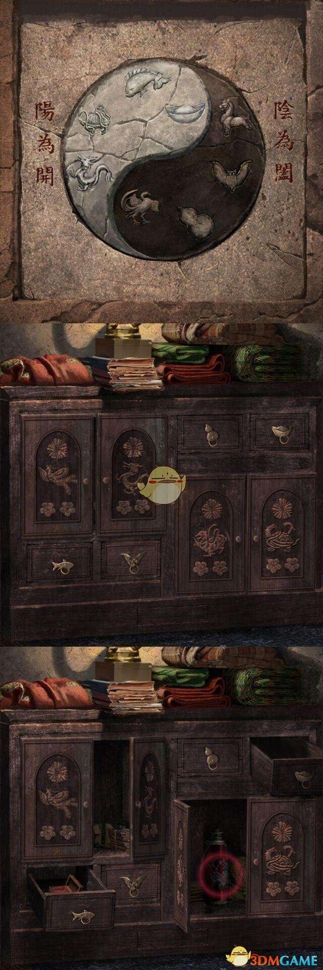 ⑧根据线索开关里间的柜门,对比柜子上的图案开关。获得:龟壳 图8所示