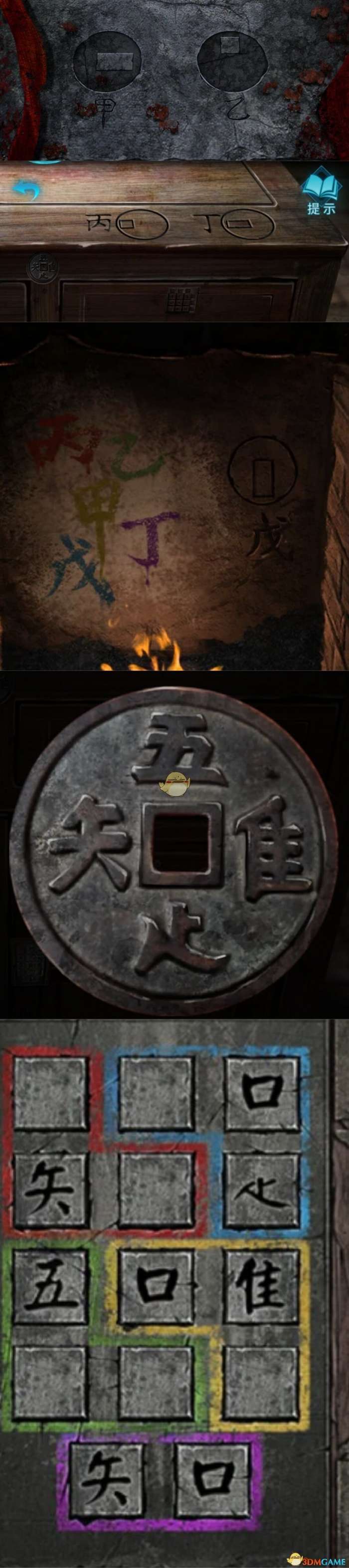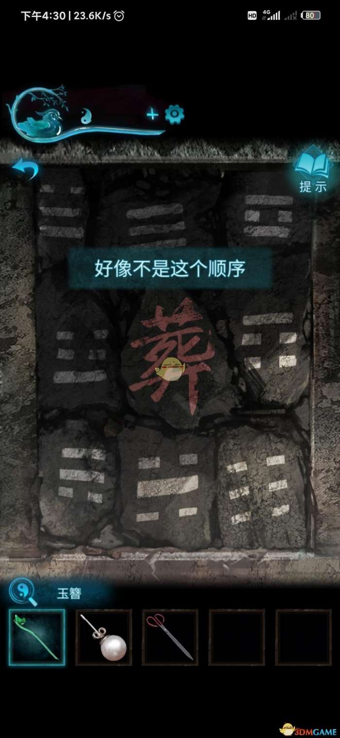 ⑦过剧情,点击石兽下面的密码,从左往右按照:坤-宙-乾-神-凡-鬼 打开石门
