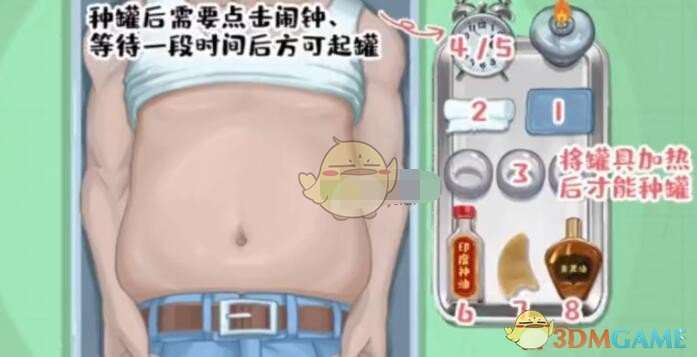 1、【罐绝一身】关卡需要拔罐,首先用蓝色毛巾将脏东西擦干净