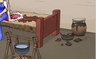 4、第四步:拖动锤子将右上的罐子锤破,里面可以看到有红薯;
