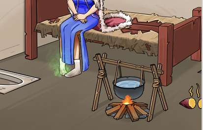 5、第5步:把红薯移动到锅里煮熟,然后给美女吃就可以通关了。