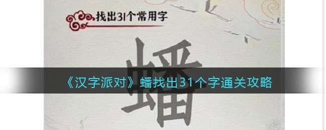 汉字派对游戏是在抖音上很火的文字休闲益智闯关手机游戏!很多小伙伴想知道汉字派对蟠找出31个字怎么过?这一关大家需要找的字非常多,难度不小。下面是创意手游小编给大家带来的《汉字派对》蟠找出31个字通关攻略分享,没有过关的小伙伴们一起来看看吧。