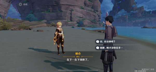 3、来到海滩边,跟朝仓对话。