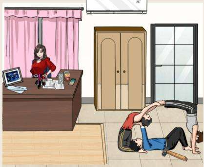 5、拖动桌上的抹布到窗帘后的窗户上,擦干净出现人