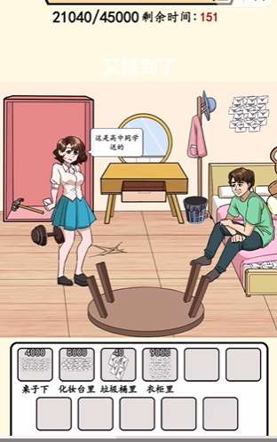 3、使用铁锤砸开地板可以发现情书,点击垃圾桶可以发现。