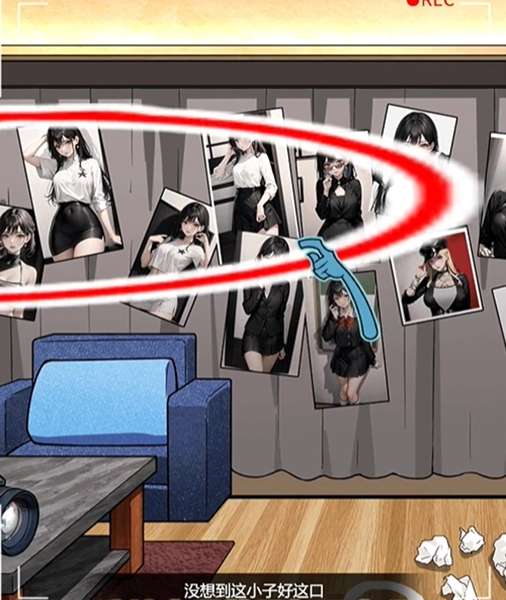 6、再进入左上角的房间,点击纸巾、墙上的照片、相机、血迹