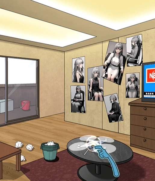 4、接着进入坐轮椅女生的房间,点击手臂针孔、腿上伤痕、脸部烫伤、洒了的肉汤、遗照、合影、新闻、地上的报纸