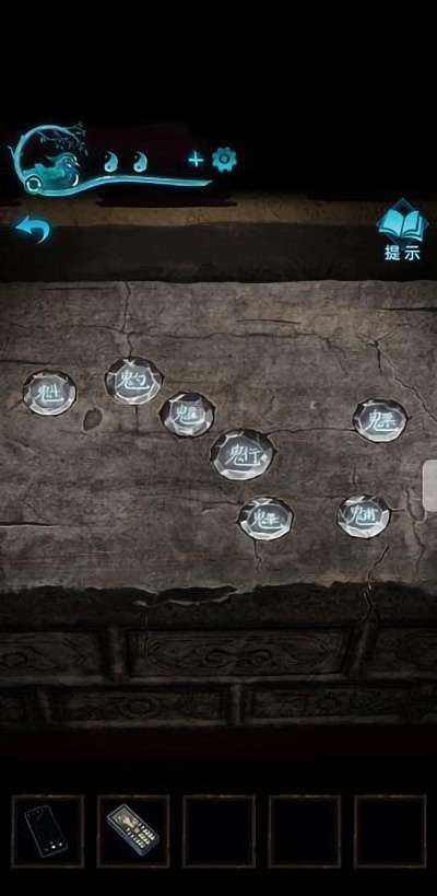 13、男性角色拿着皮影,点击走廊。我们跟着皮影走,在经历剧情后,将手机放在石碑上,然后男性角色将烟袋递给了妹子。