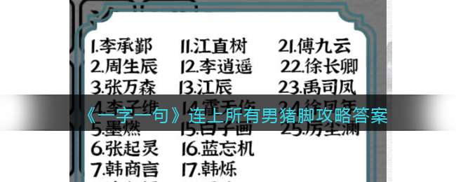 以上就是抖音小游戏《一字一句》连上所有男猪脚攻略答案分享,更多关卡攻略,请点击关注创意手游!