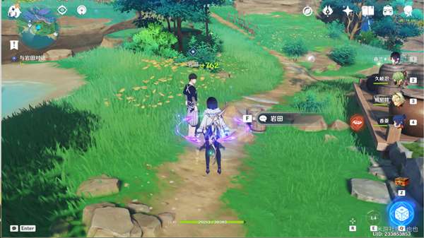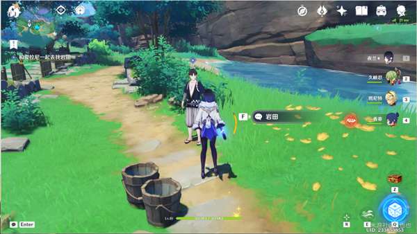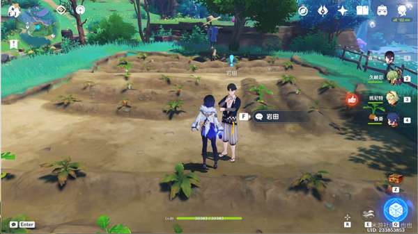 2、来到田地里,跟岩田对话触发肥料推销员任务。