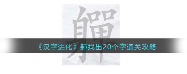 汉字进化是近期抖音火爆的一款益智闯关游戏,游戏中軃找出20个字是最新的找字关卡,玩家需要进行拆文解字,找出其中隐藏的不同汉字。下面是创意手游小编给大家带来的《汉字进化》軃找出20个字通关攻略,还没有通关的小伙伴们一起来看看吧。