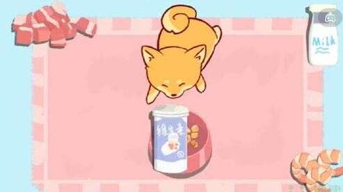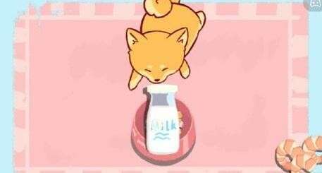 3、放好后,玩家将牛奶倒入狗狗碗里,将虾放入碗里即可直至通关啦。