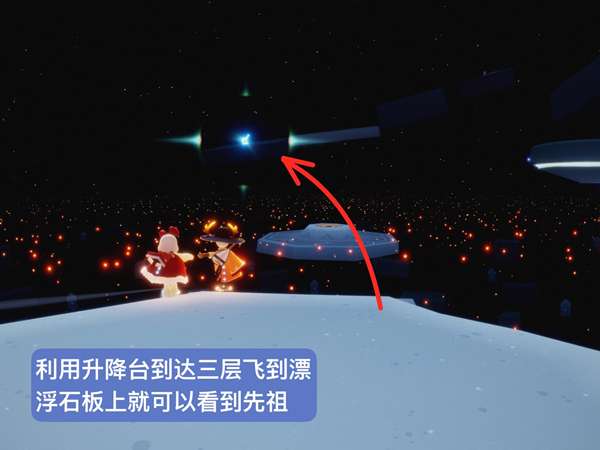 2、在悬浮台上跟着先祖走,最后来到亭子里面就可以拿到握手站姿了。