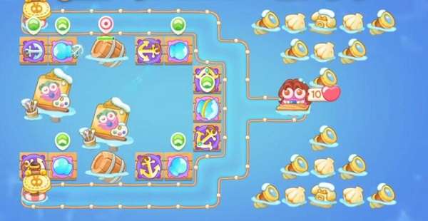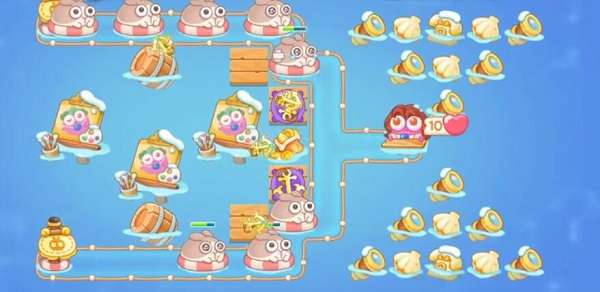 1、开局地图送两个船锚,升级船锚清理兔子和障碍物。