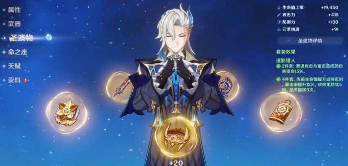 1、毕业装备:专武+逐影猎人套装,水伤杯。加上突破提高暴击伤害的特性,那维莱特的暴击很容易堆上去,对面板加成的要求相对就会低一些。