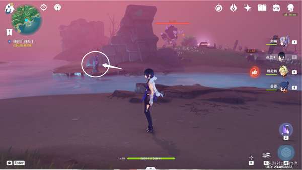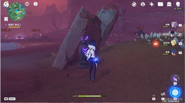 4、来到惑饲滩,对着发光雕像使用羽毛。