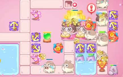 1、如图所示的位置放置一个鞭炮并升到满级,然后集中攻击中间障碍物。