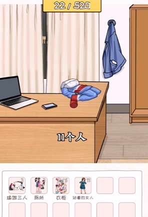 1、进入游戏后可以看见地上有三个女人,再依次点击左上角的女人11次。
