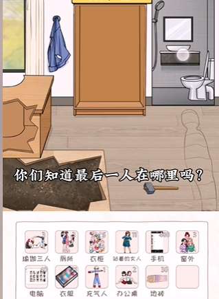 3、使用锤子砸开桌子和地板可以发现,点击窗帘可以看见女人。