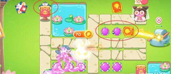 3、第二波我们在如图所示位置补两个魔法球,优先清理左边钱币箱。