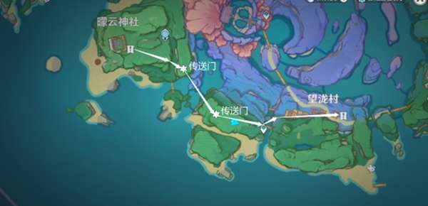 1、首先我们需要传送到稻妻的曚云神社附近传送点然后前往神社附近。