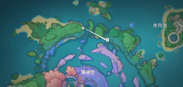 6、然后我们传送到珊瑚宫上面的传送点,接着前往下图中的标记处。